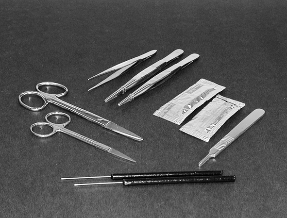 - 1 manche de scalpel; 1 paquet de 5 lames arrondies;