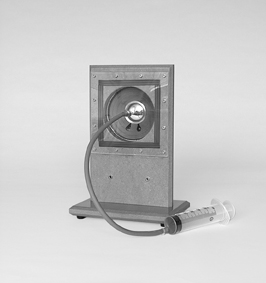 Un morceau de plexiglas transparent est fixé de façon à emprisonner l’air d’un côté de la membrane.