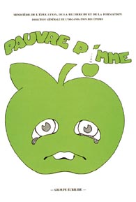 Une belle pomme verte qui vient de tomber dans l'herbe est convoitée par une vache, par un hérisson puis par un ver...